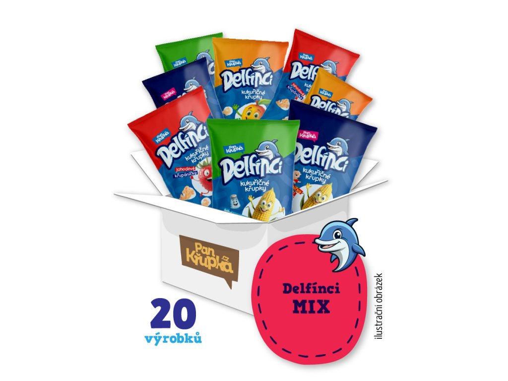 Pořádná zásoba kukuřičných delfínků v mixu tak, jak je nejčastěji kupujete. 20 sáčků za výhodnou cenu!